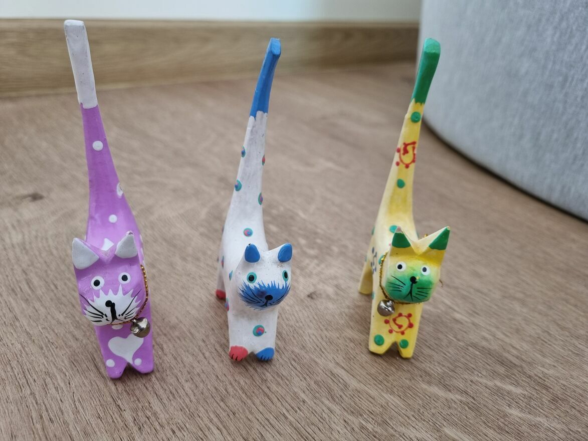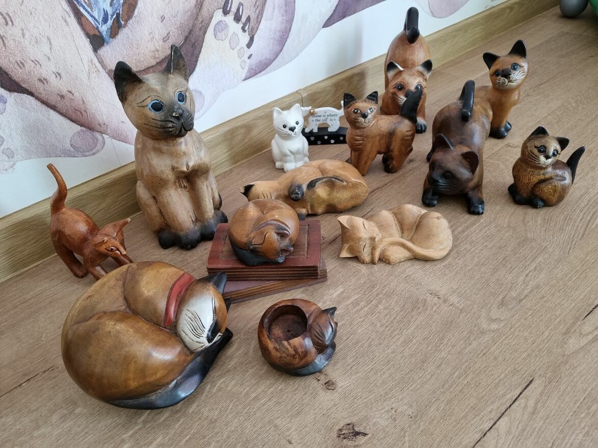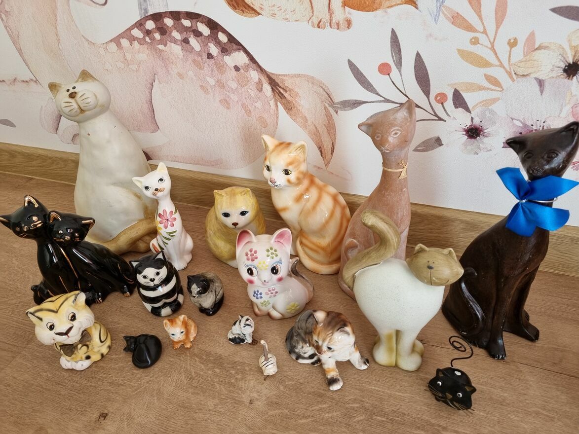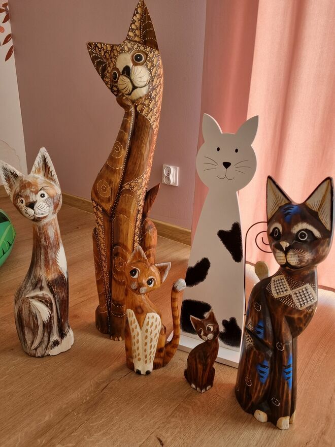 Kolekcja figurek (kotów) drewnianych i porcelanowych, stan bardzo dobry.Możliwość kupienia całej kolekcji,lub pojedyńczych sztuk.Gabi J