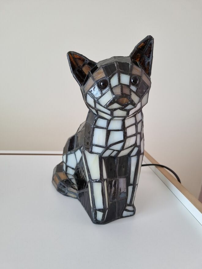 Na sprzedaż lampka kot w formie witrażu.Niestety lampka ma uszkodzony kabel.